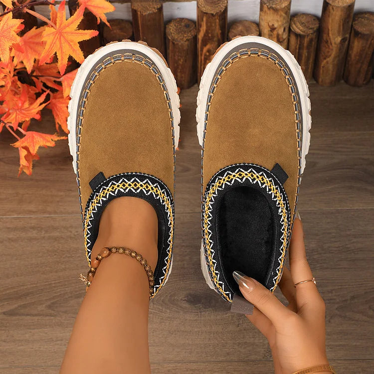 Bequeme Schneestiefel mit Leopardenmuster, feinen Nähten und runder Zehenpartie