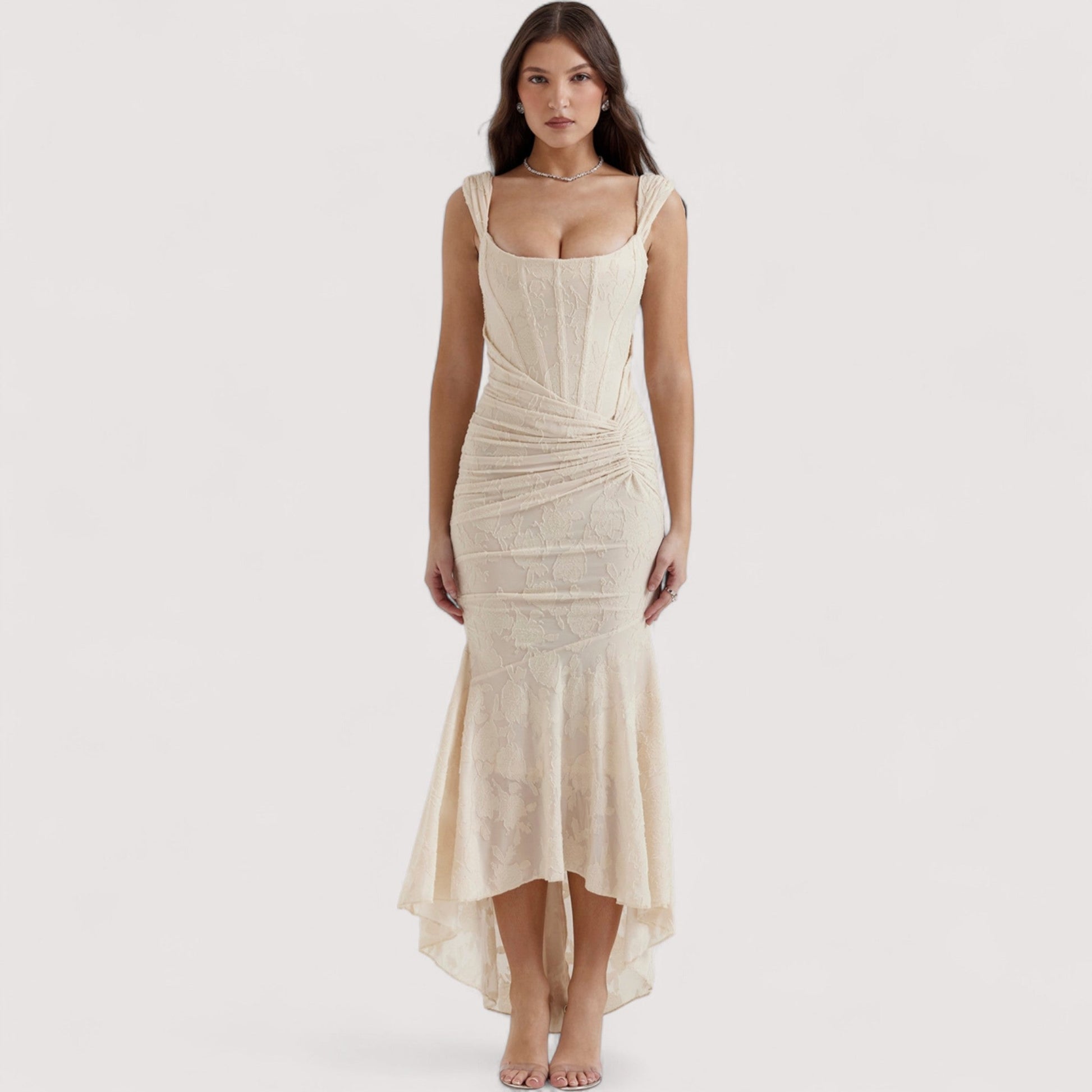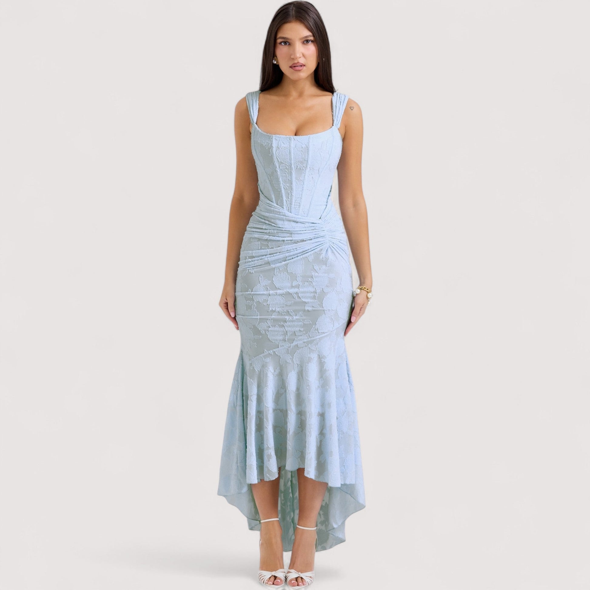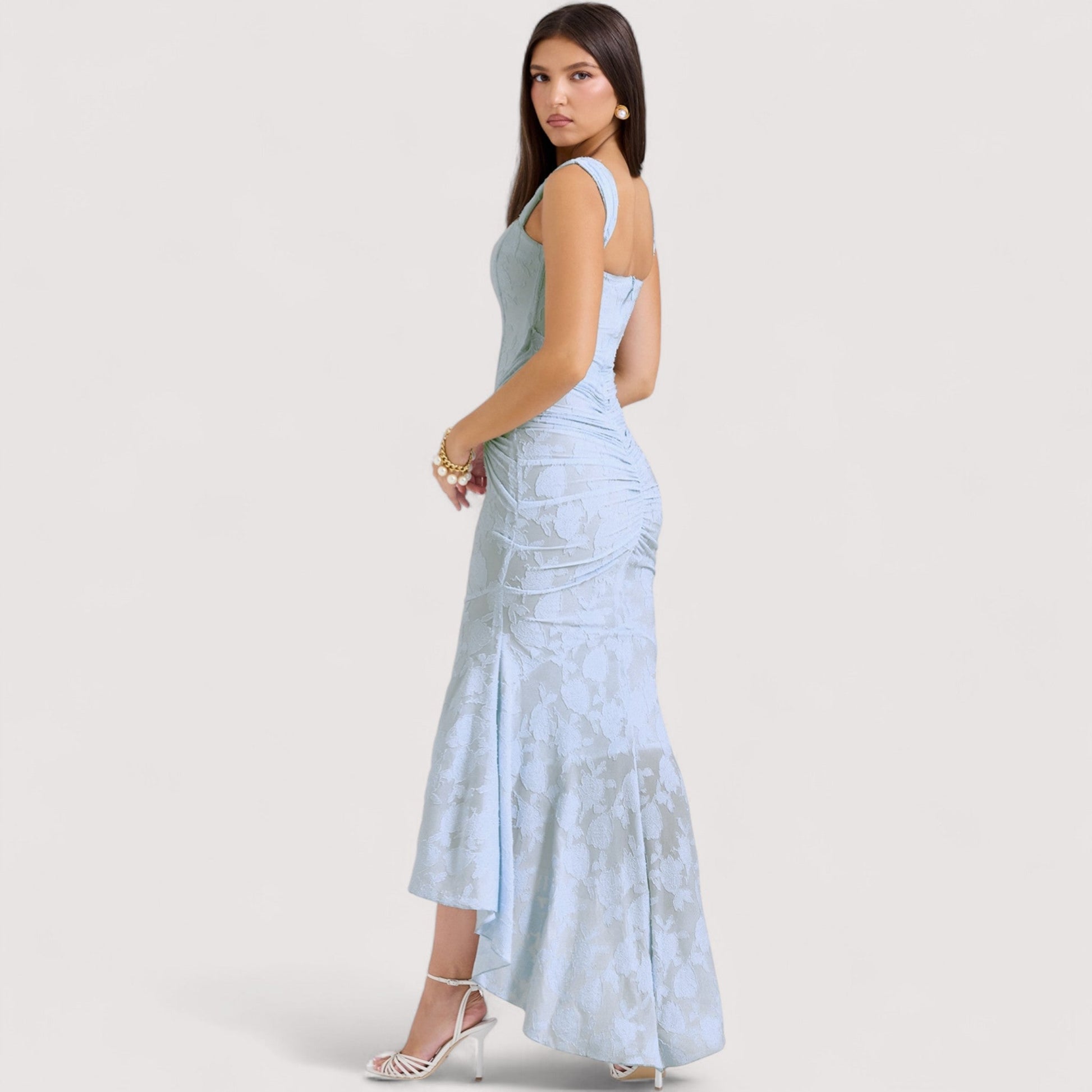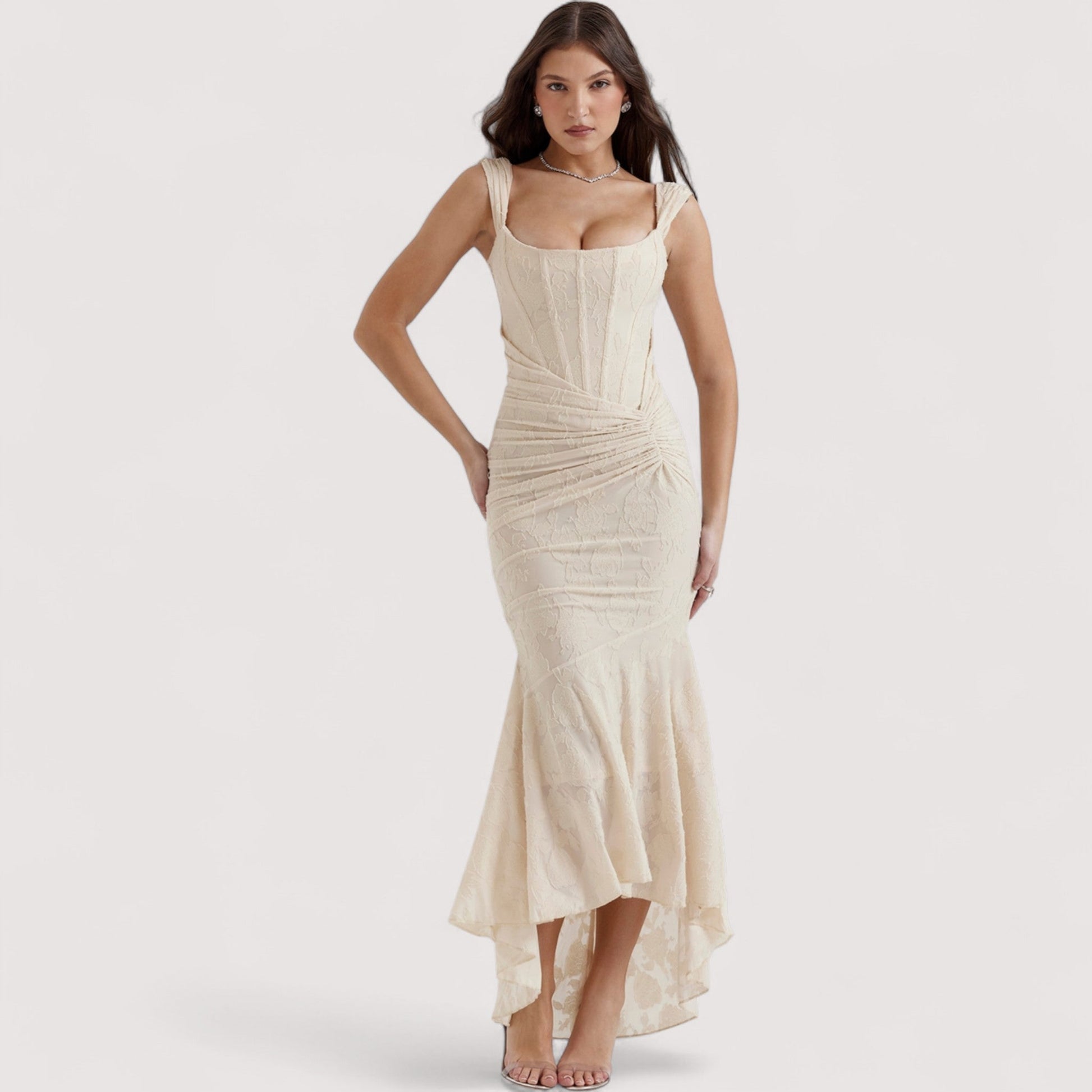 Entdecken Sie zeitlose Eleganz und eine schmeichelhafte Silhouette mit unserem exklusiven Abendkleid, ideal für Hochzeiten, Galas oder jeden Anlass, der sanfte Raffinesse erfordert.