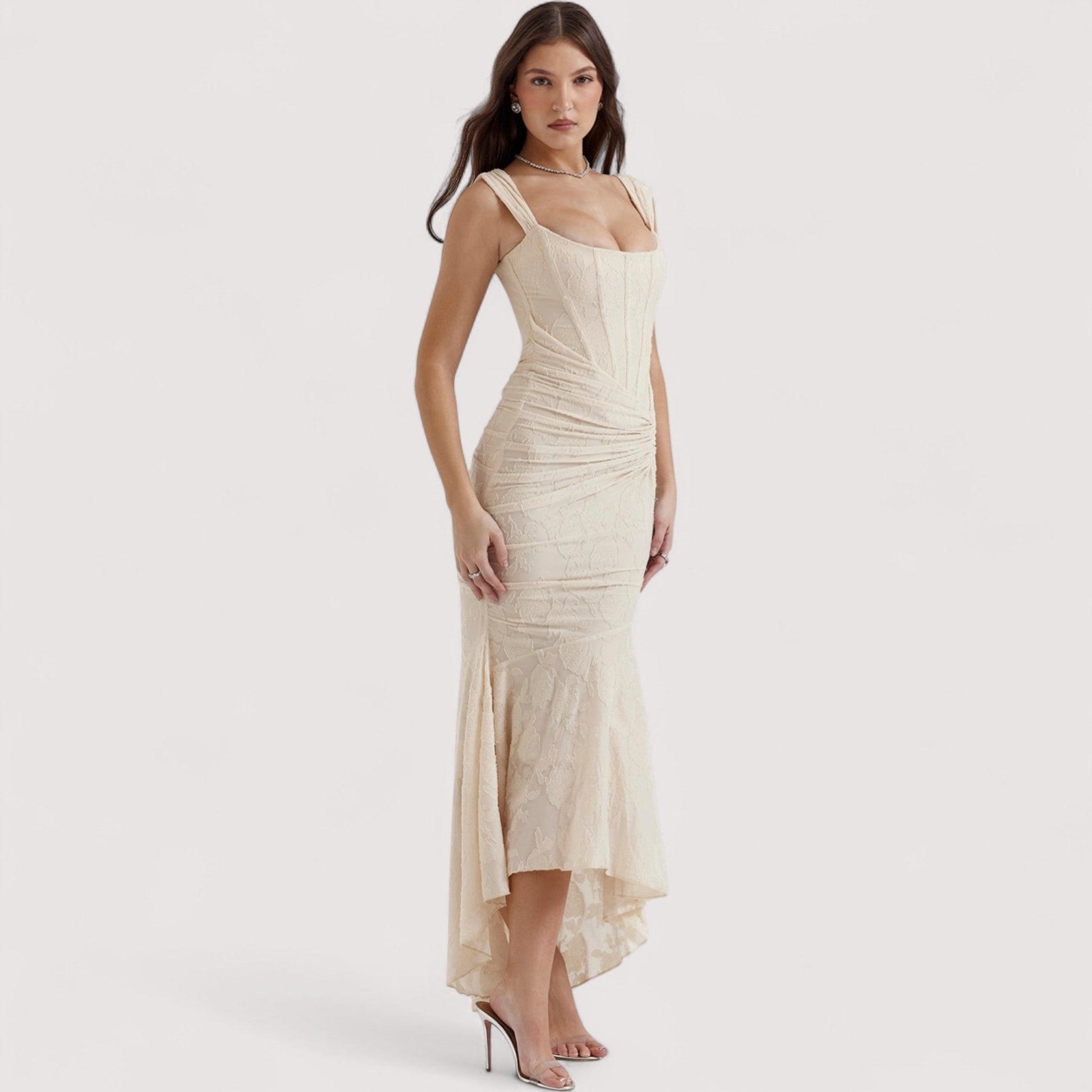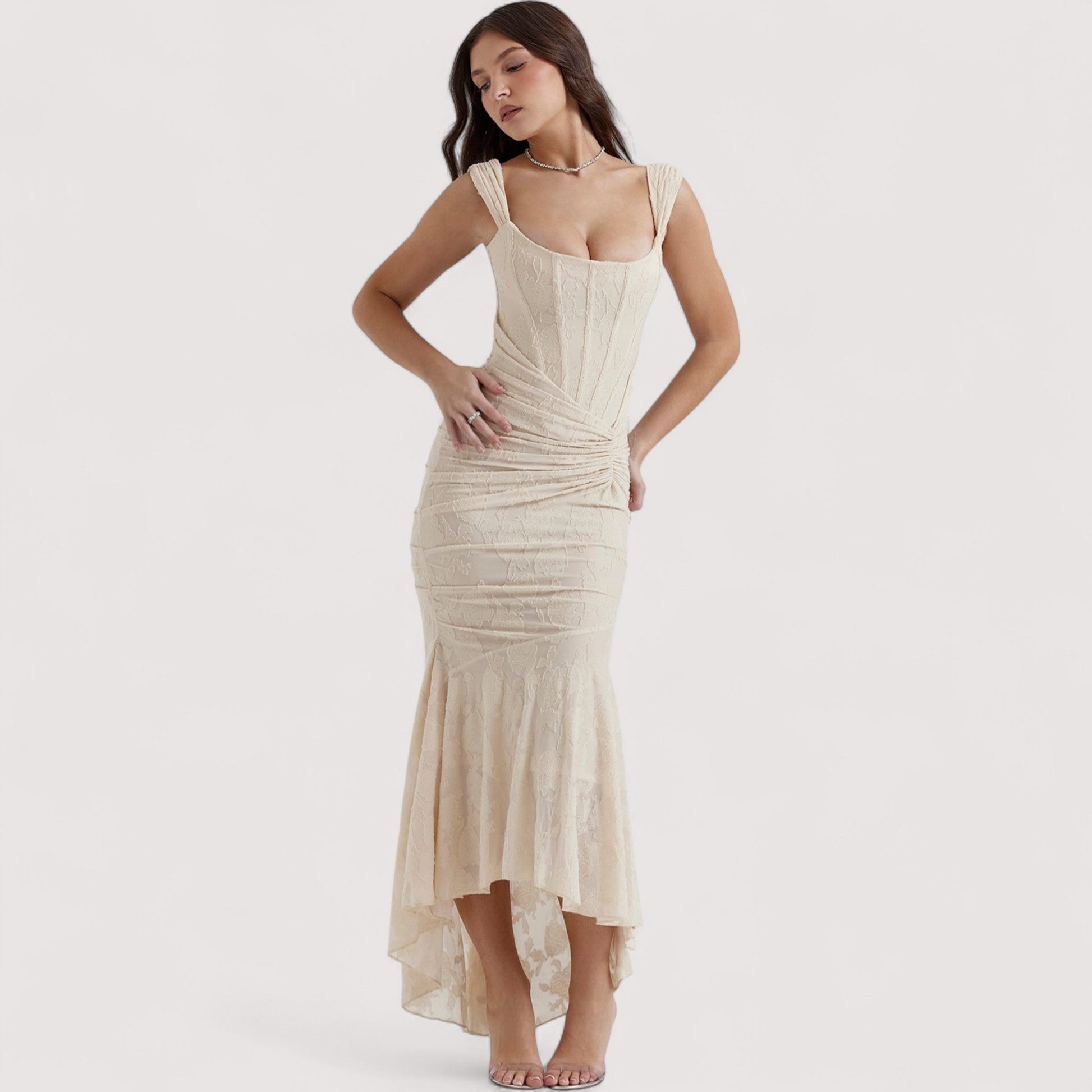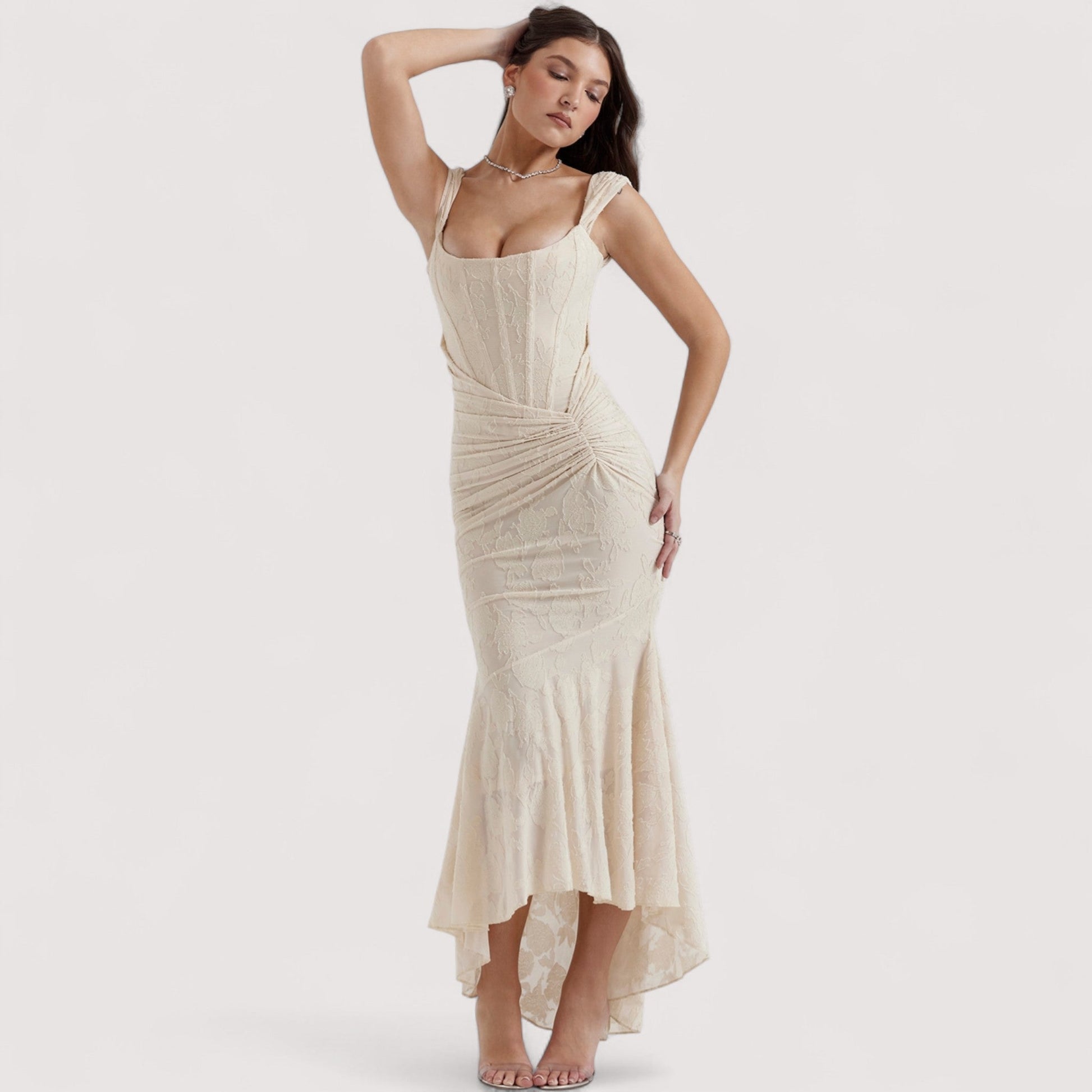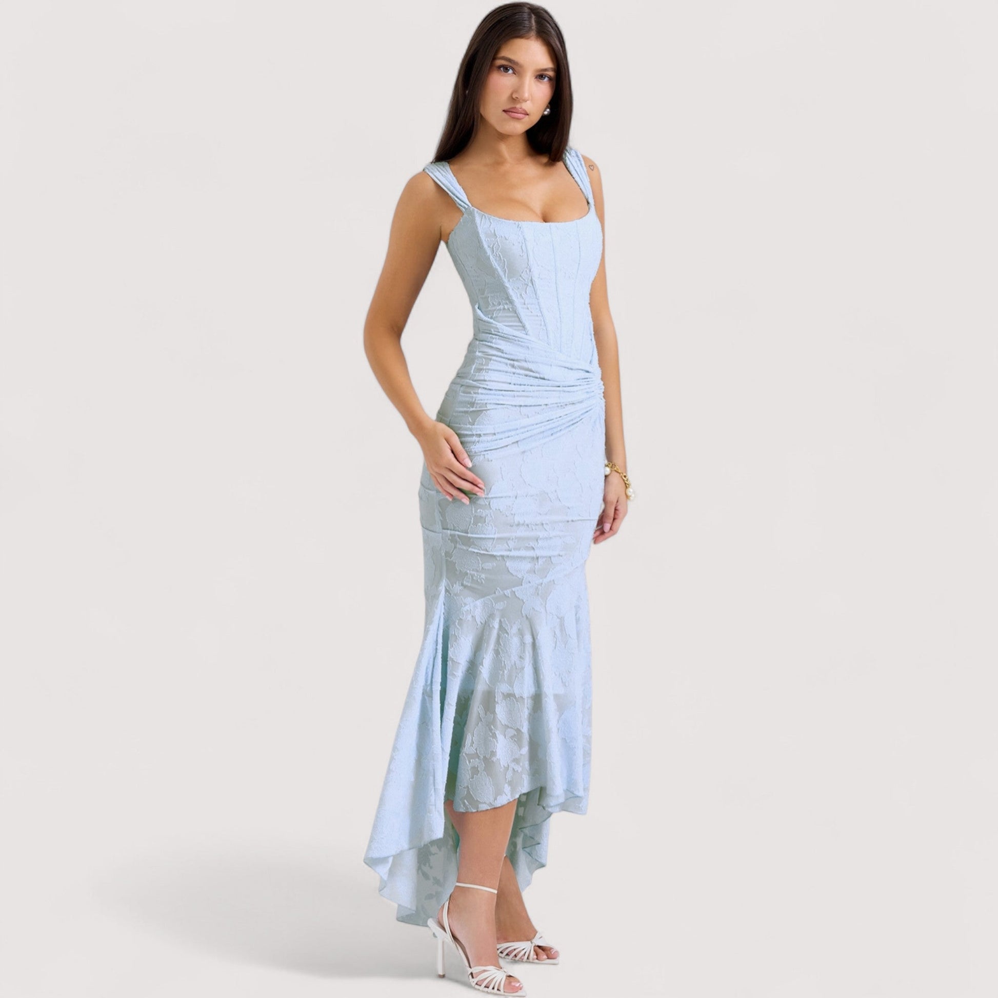 Entdecken Sie zeitlose Eleganz und eine schmeichelhafte Silhouette mit unserem exklusiven Abendkleid, ideal für Hochzeiten, Galas oder jeden Anlass, der sanfte Raffinesse erfordert.