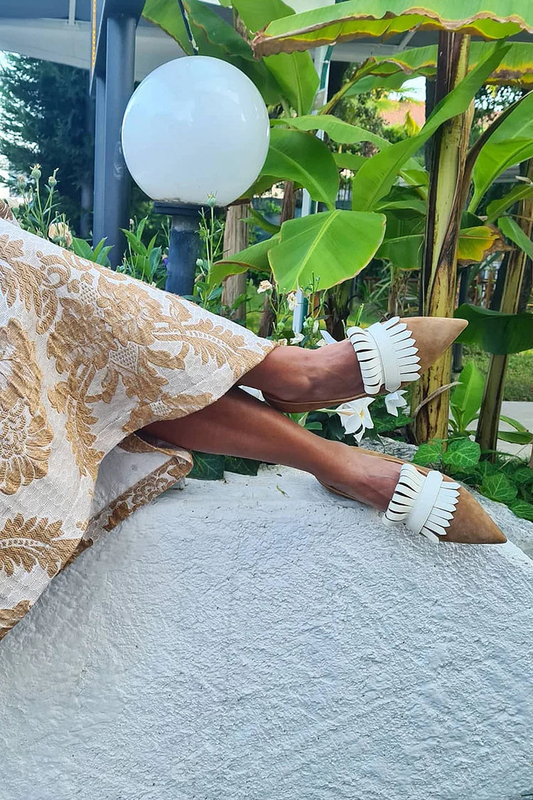 Colorblock Slip-On Schuhe aus Kunstleder mit Quasten und spitzen Zehen