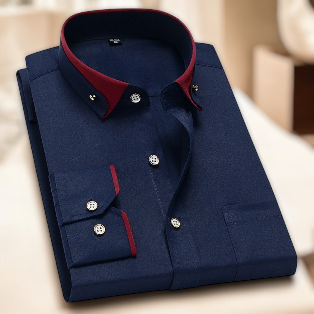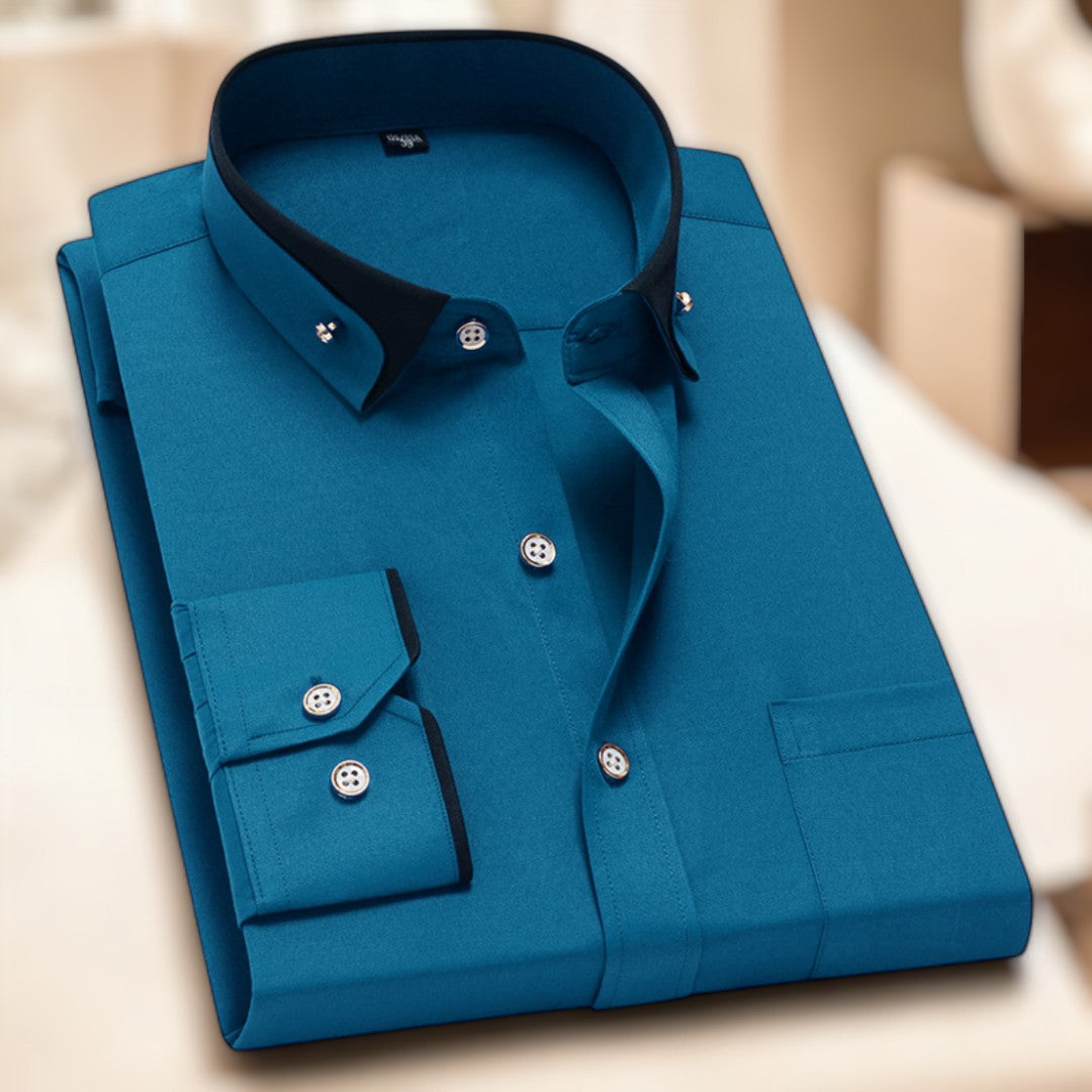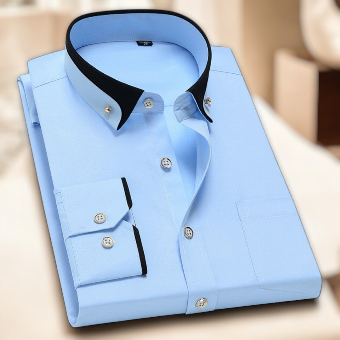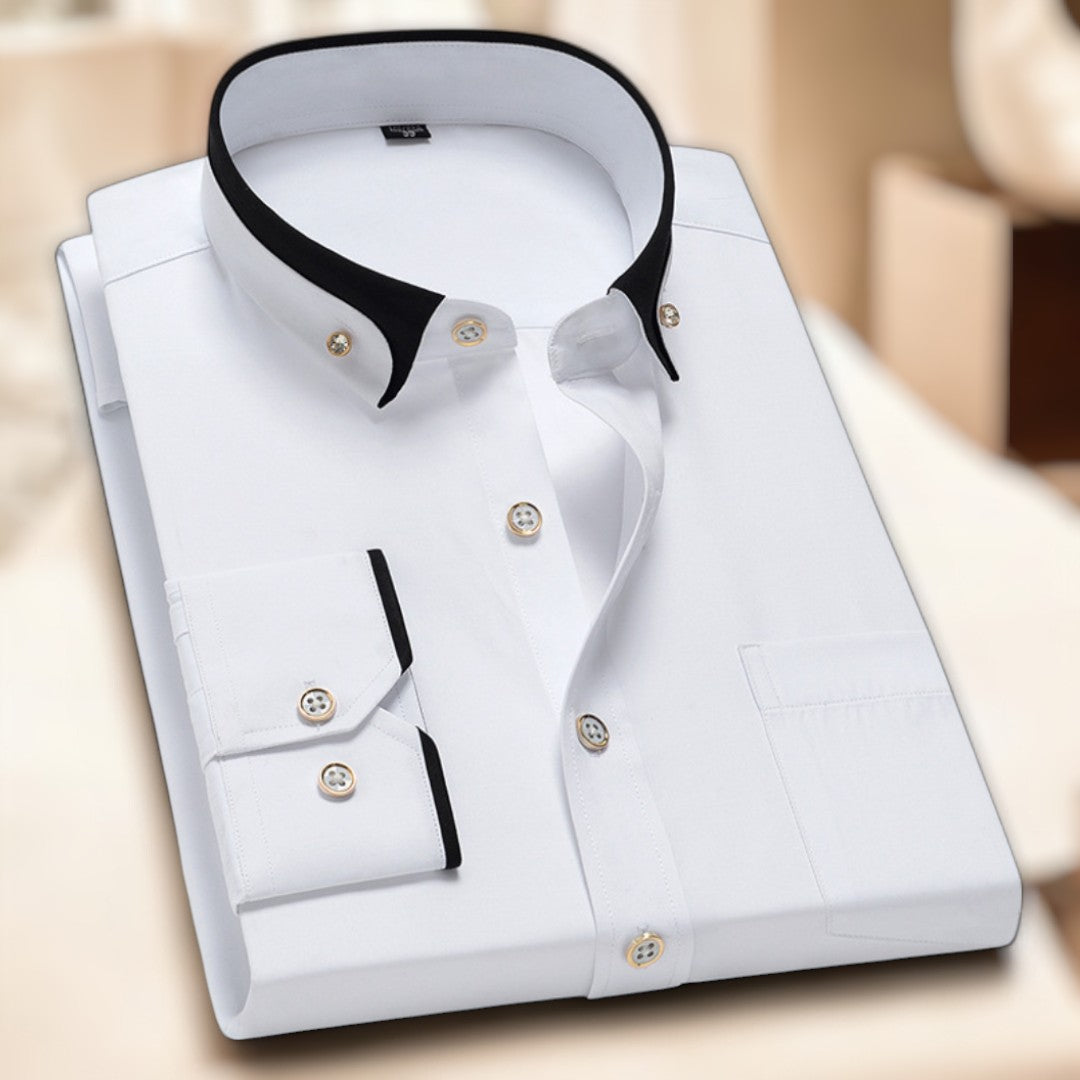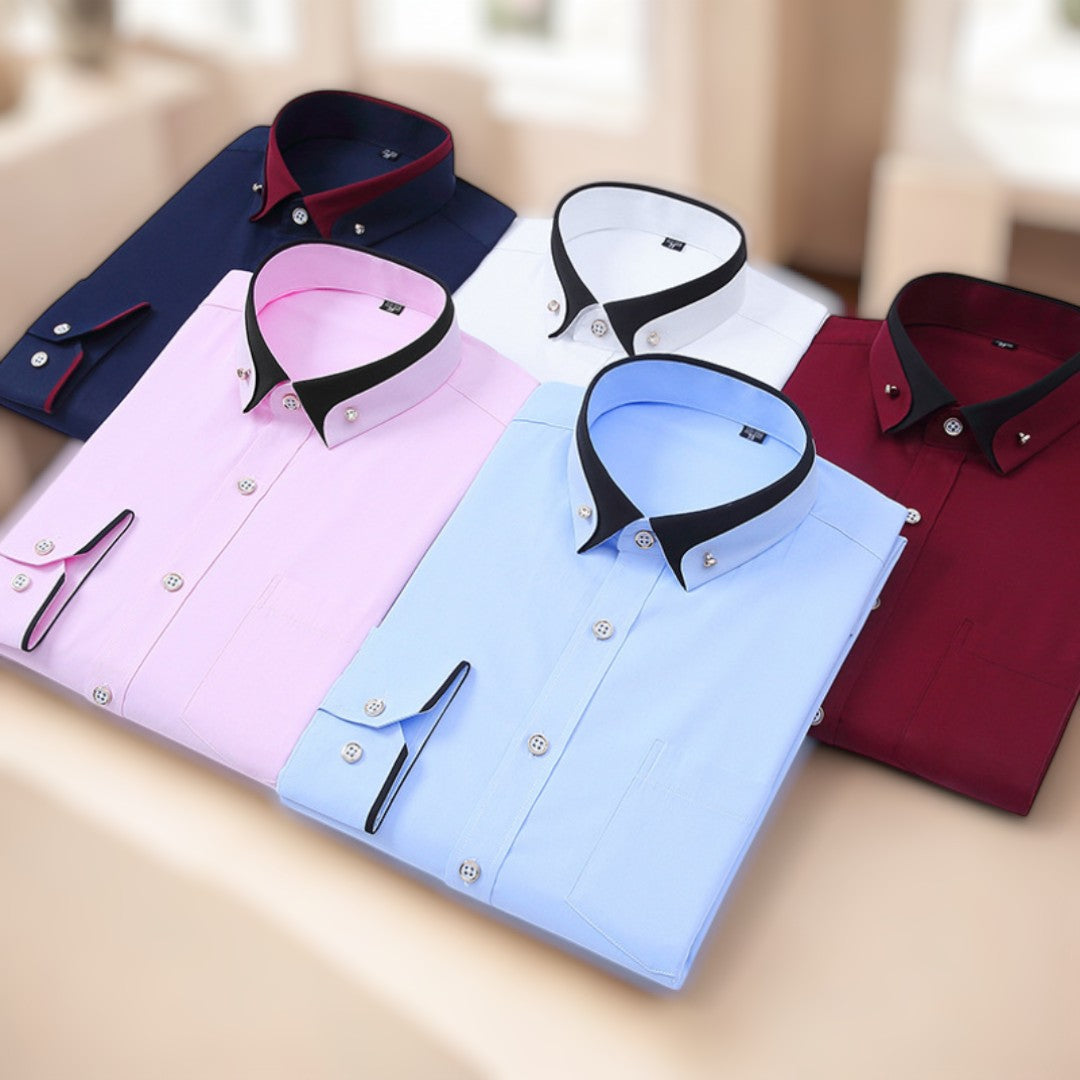 - Kontrastkragen für einen modernen Touch: Verleiht dem Hemd eine zeitgemäße Note.
