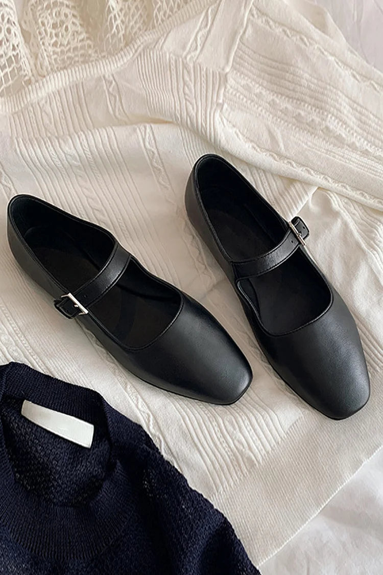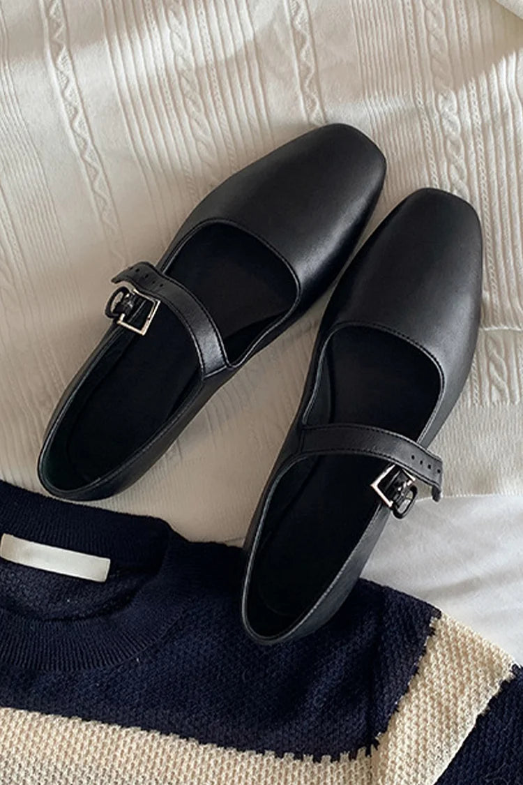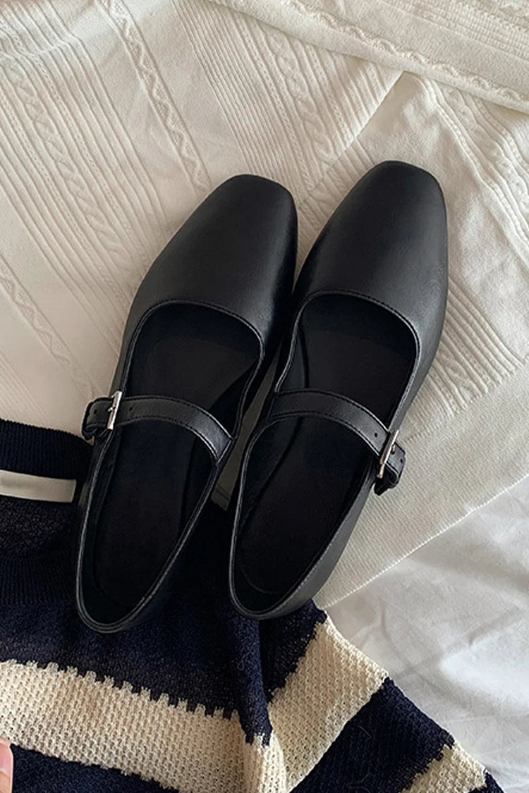 Einfarbige Ballerinas mit quadratischer Zehenpartie und Schnalle