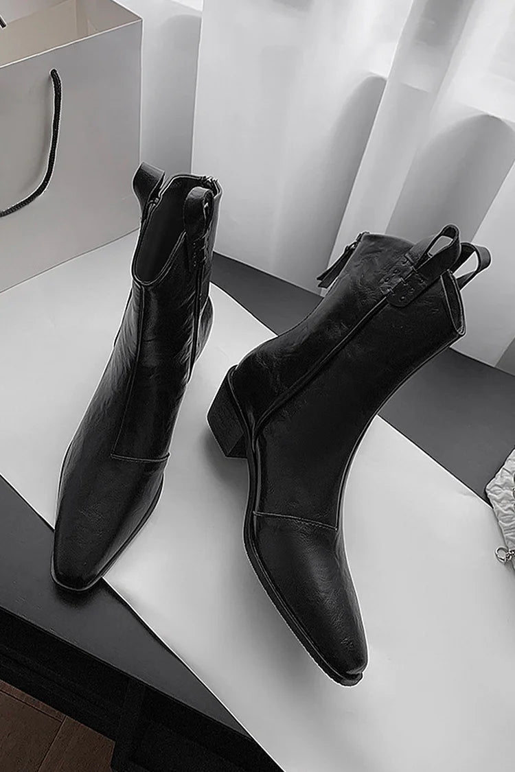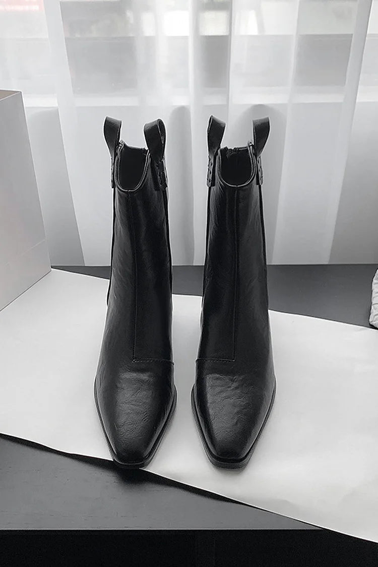 Einfarbige Patchwork-Stiefel mit spitzem Zehenbereich und mittelhohem Schaft