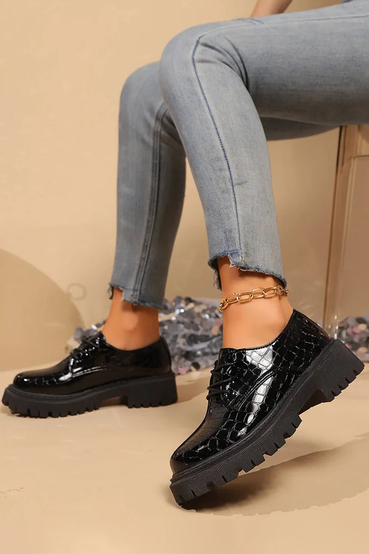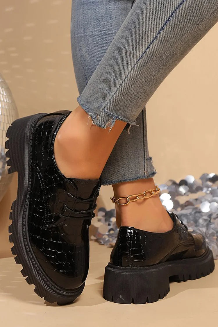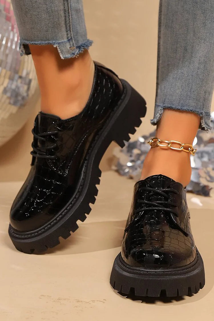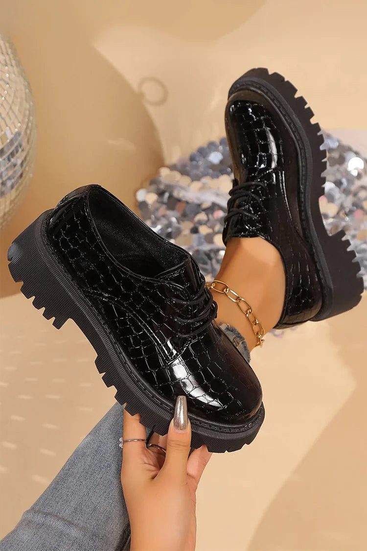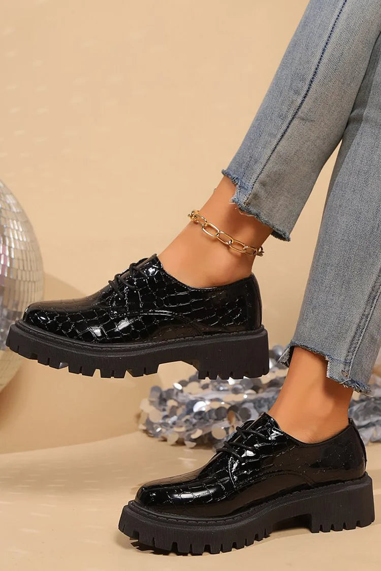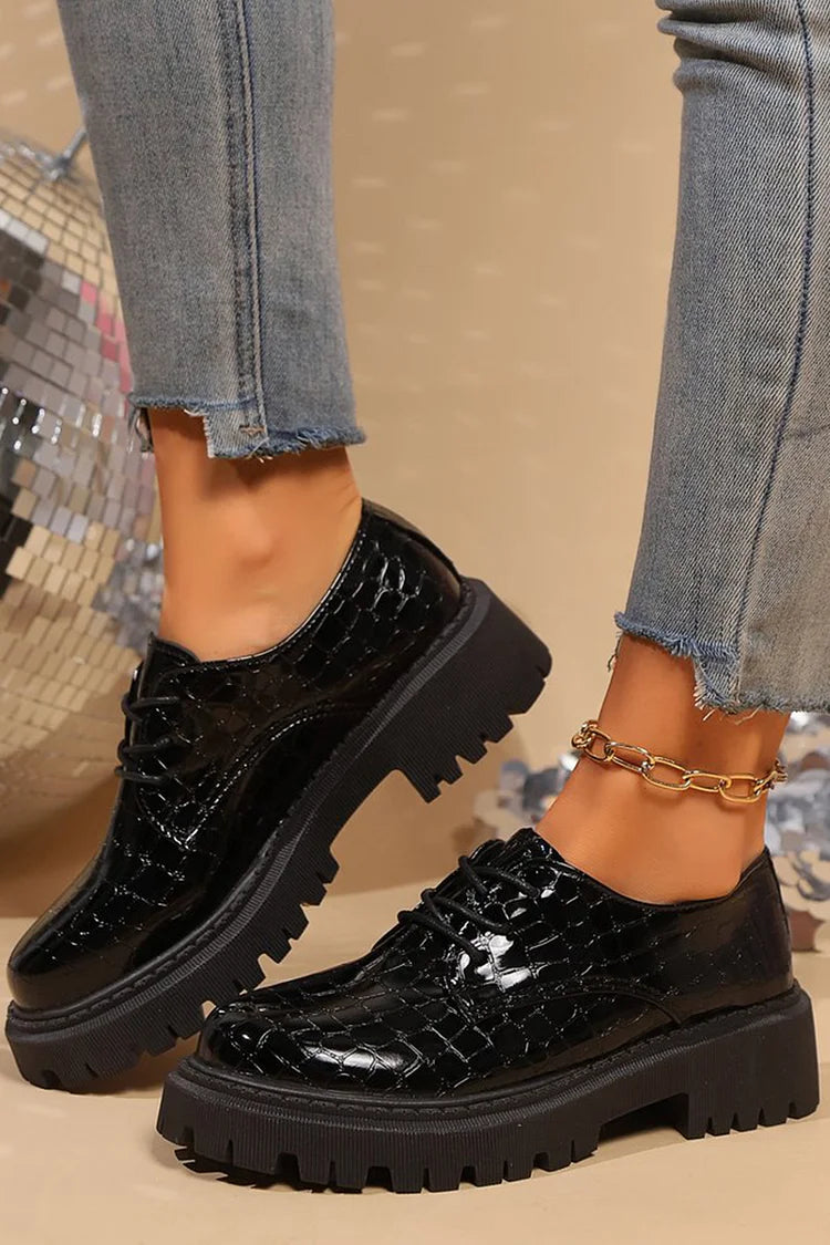 Einfarbige Schnür-Oxfords mit runder Zehenform und Krokodilmuster