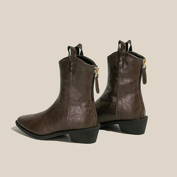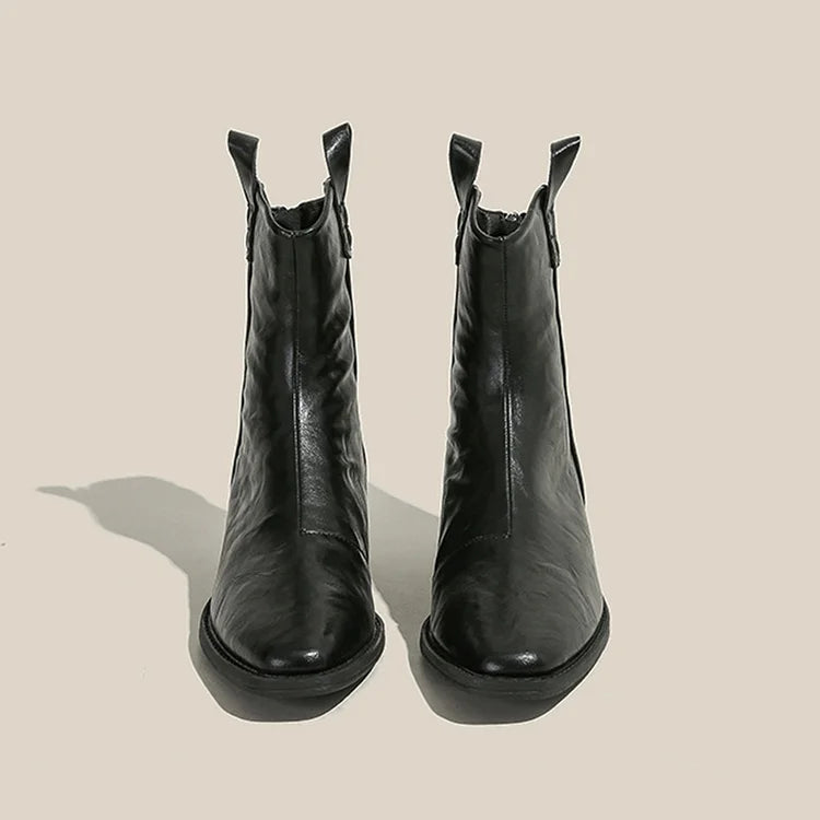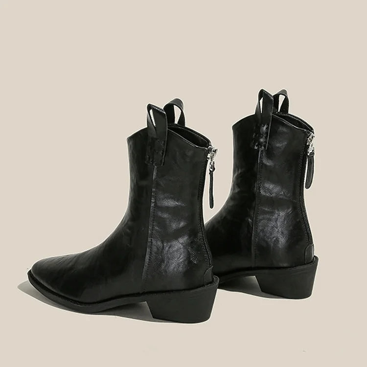 Einfarbige Stiefeletten mit quadratischer Zehenpartie, Patchwork-Reißverschluss und robustem Absatz