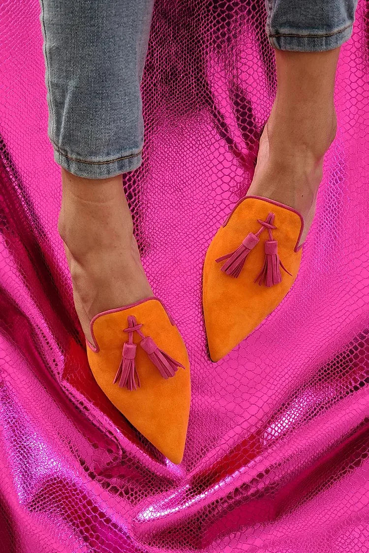 Elegante Kunstleder-Pantoletten mit Quasten-Dekor zum Hineinschlüpfen