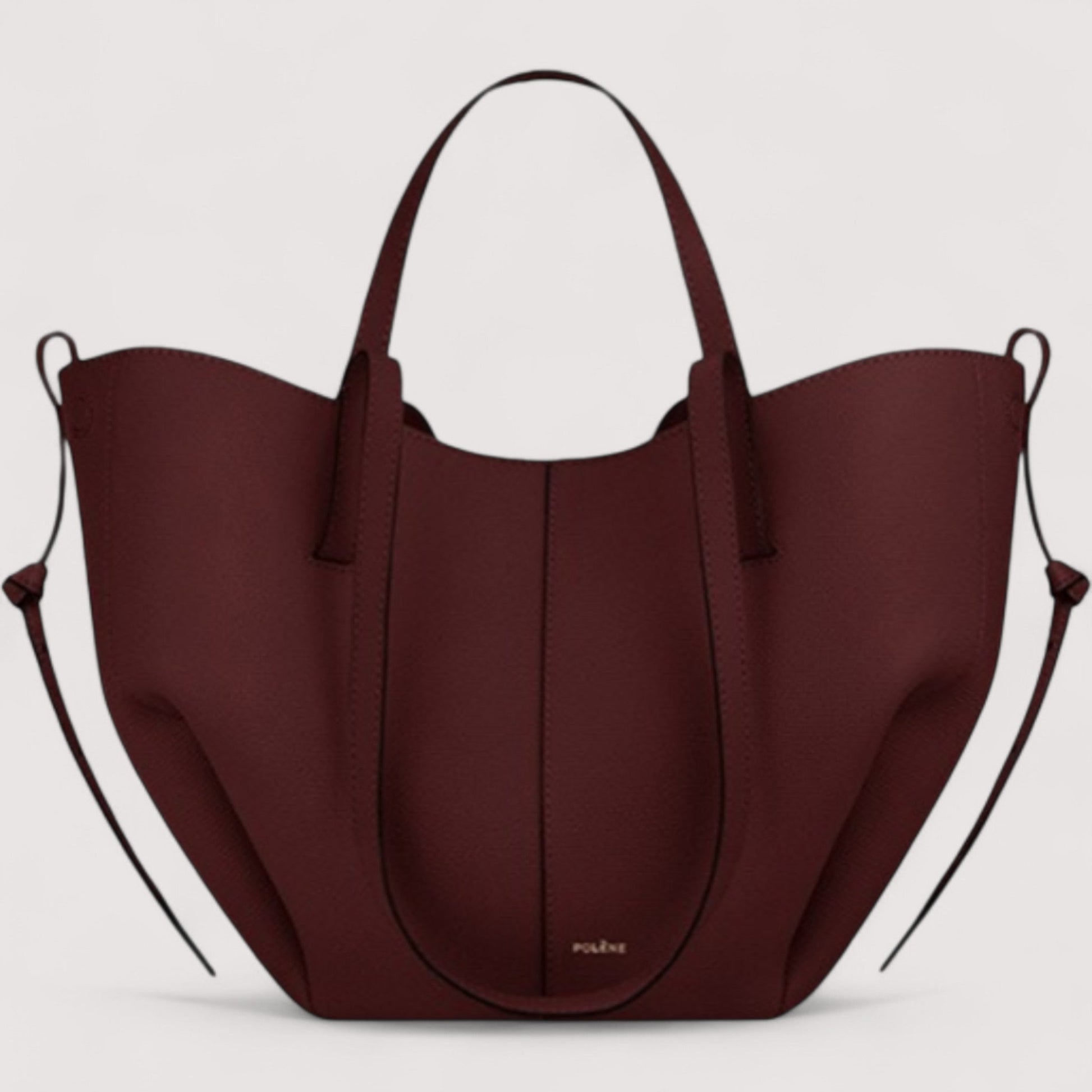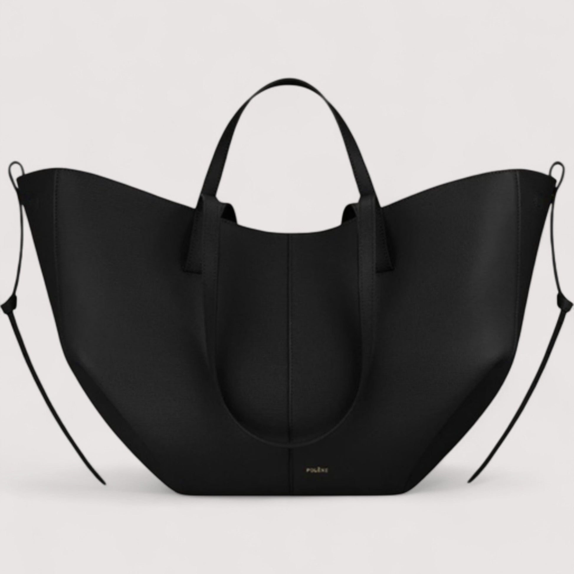 Setzen Sie ein stilvolles Statement mit dieser formbetonten Tragetasche, die modernes Design mit praktischer Alltagstauglichkeit vereint.