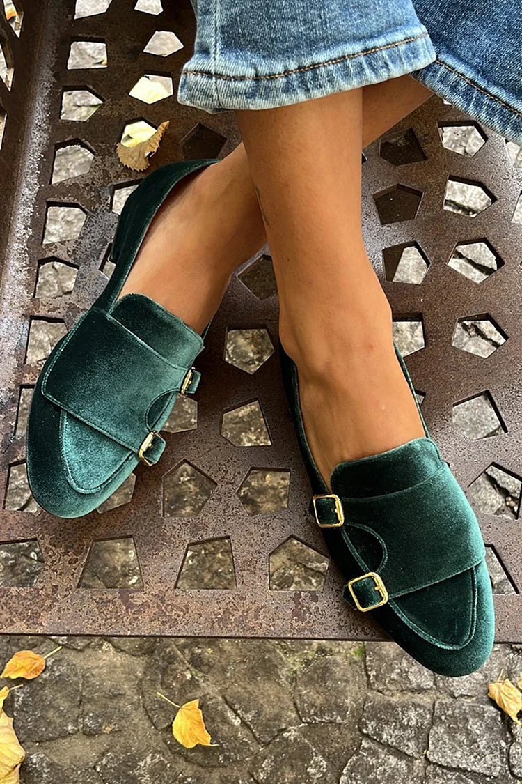 Patchwork-Stichdetail Riemenschnallen in Schlichten Grünen Flats