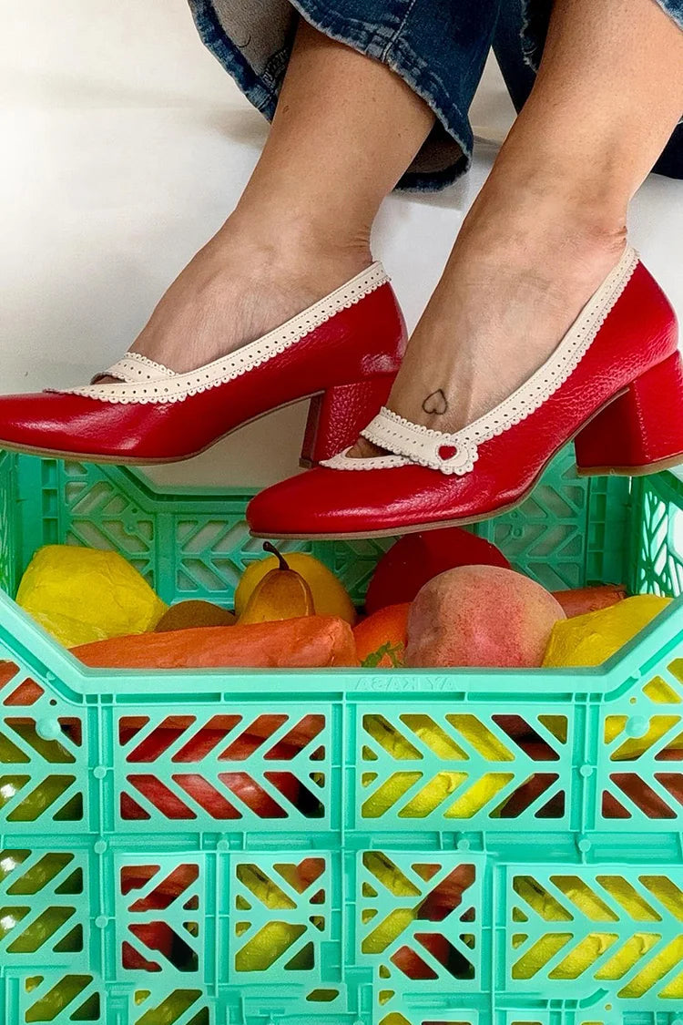 Rote Farbblock-Absätze mit runder Zehenpartie - Ausgehöhlt [Vorbestellung]