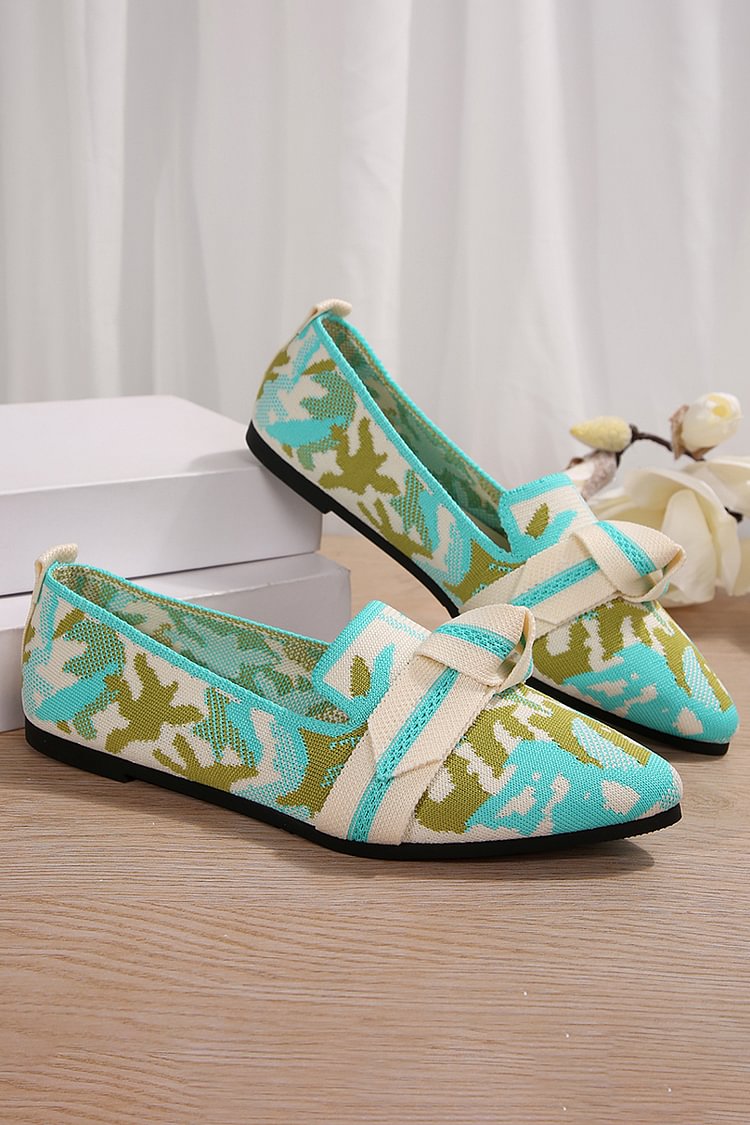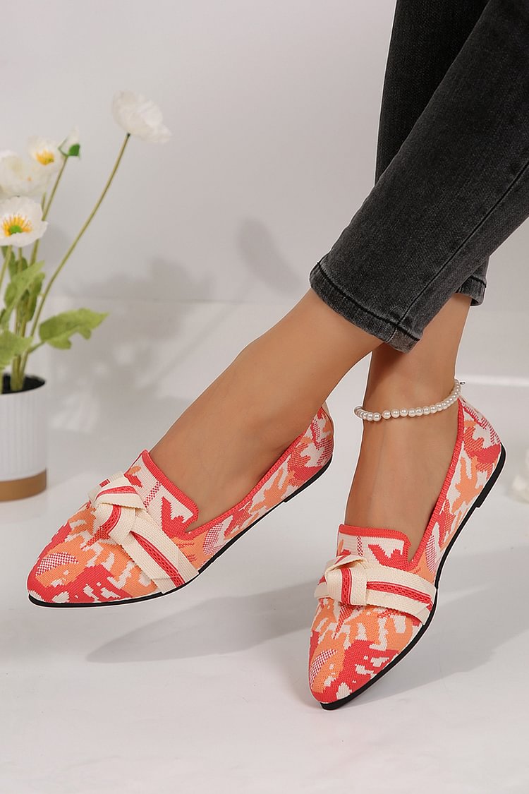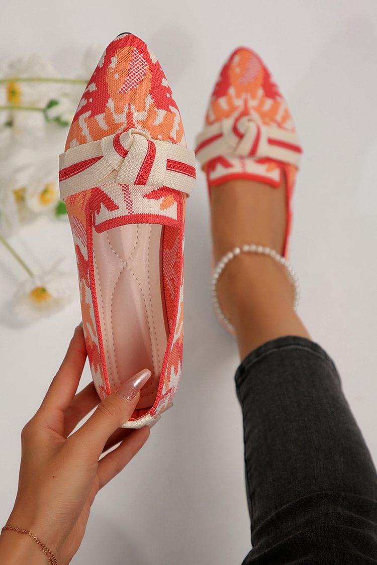 Spitz zulaufende, gestrickte Flats mit geknoteten Details im Farbblockdesign