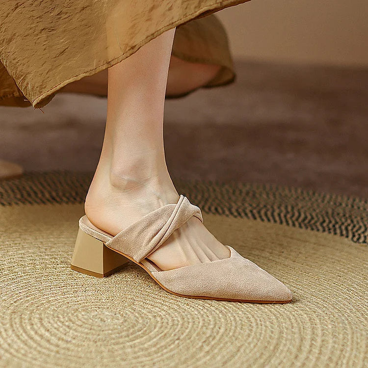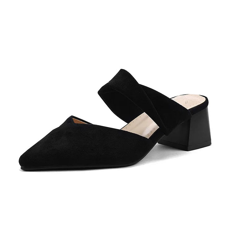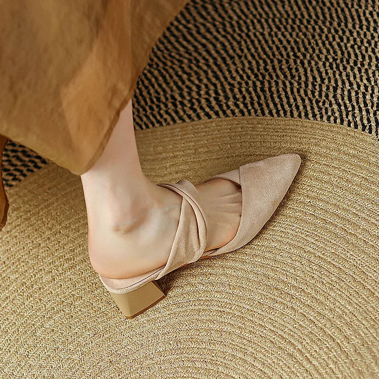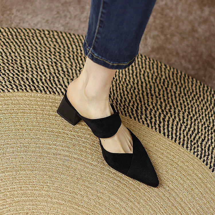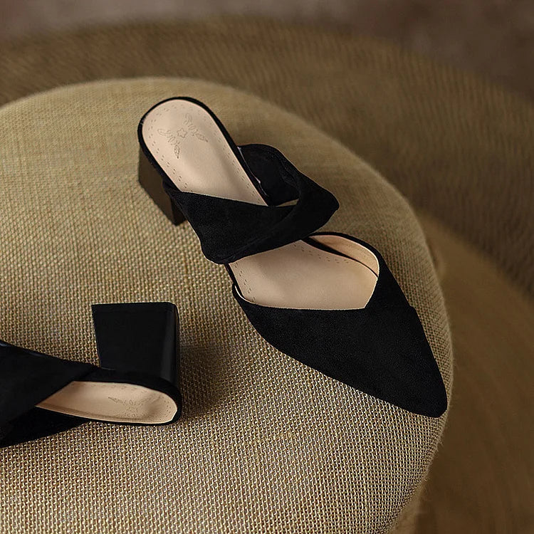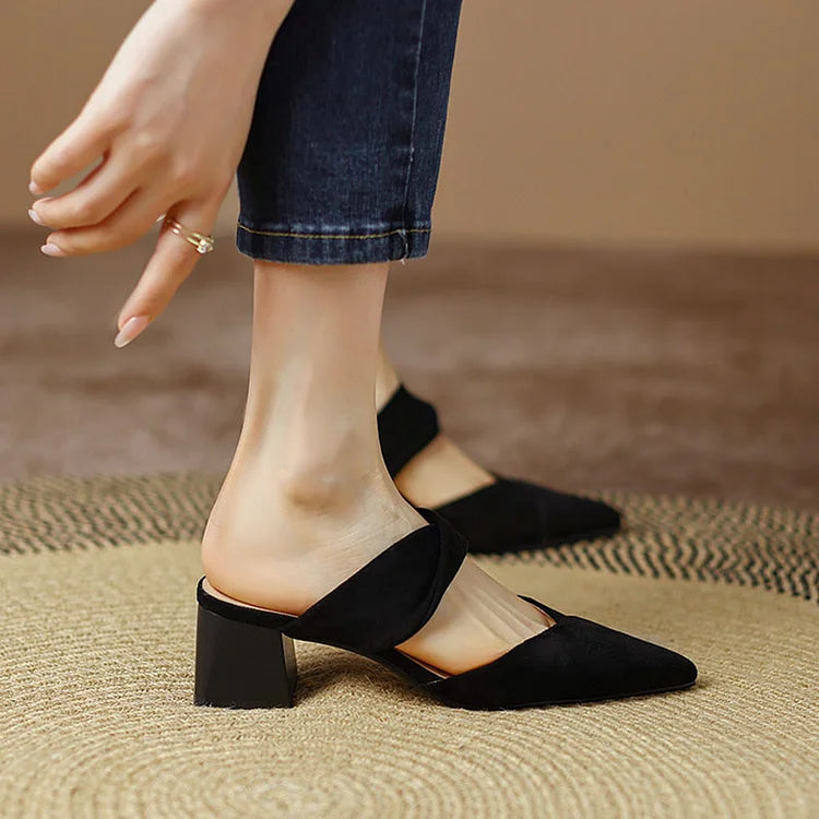 Spitze Zehen-Hausschuhe mit ausgehöhltem und klobigem Absatz