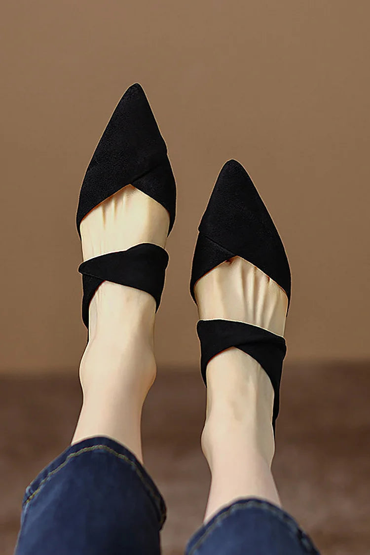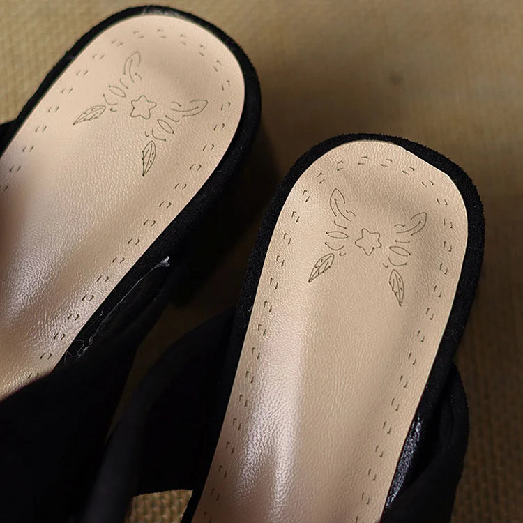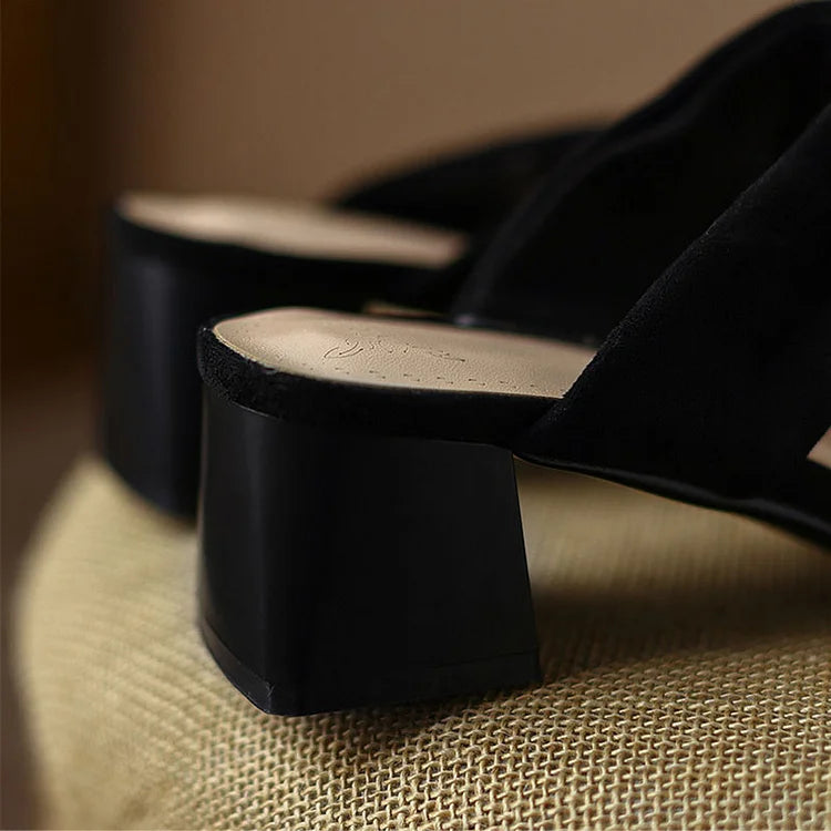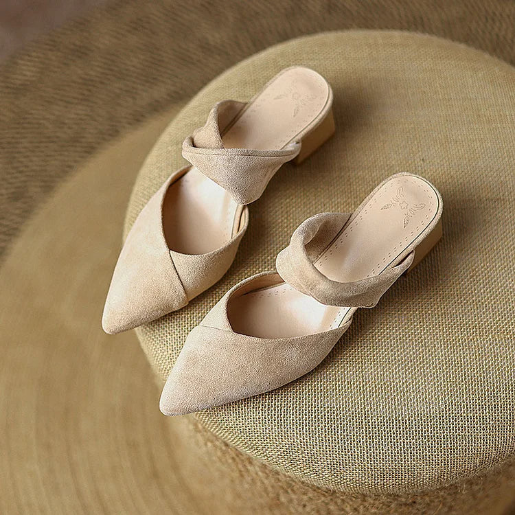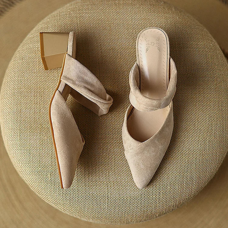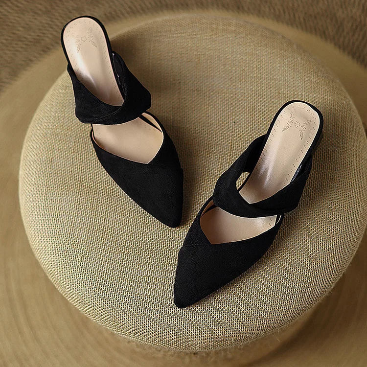 Spitze Zehen-Hausschuhe mit ausgehöhltem und klobigem Absatz