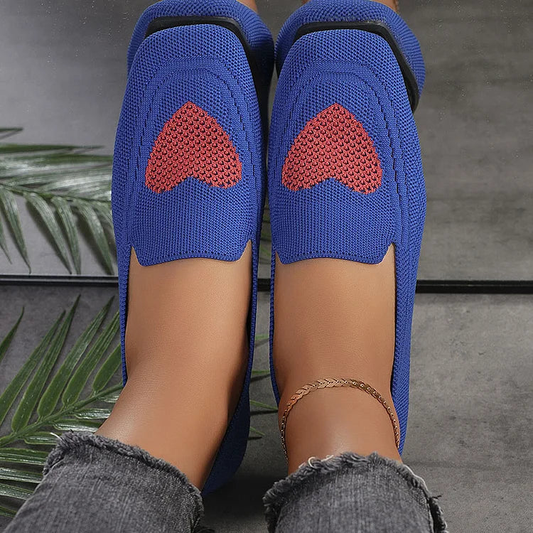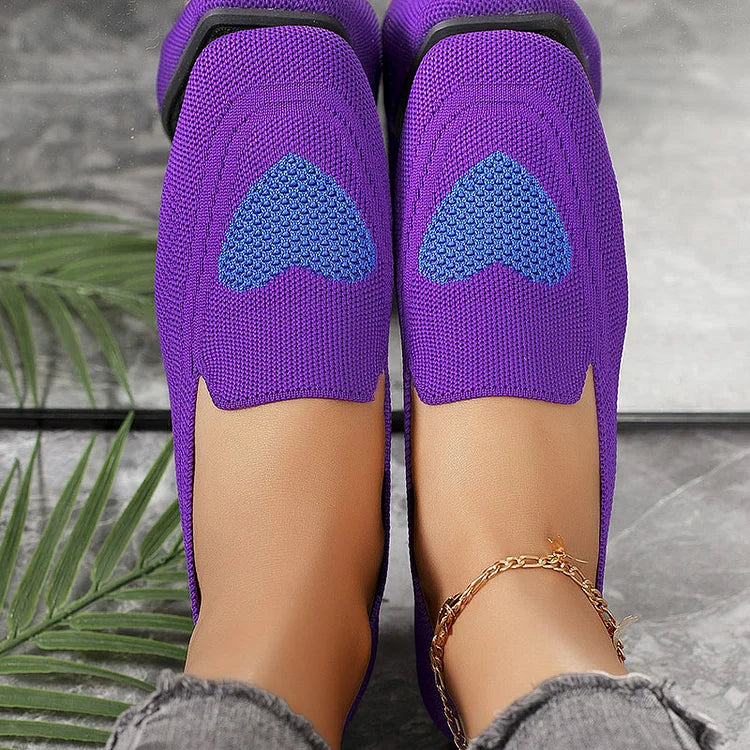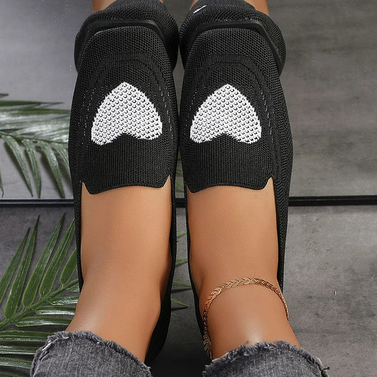 Strick-Freizeitschuhe mit Herzmuster und quadratischer Zehenpartie zum Hineinschlüpfen