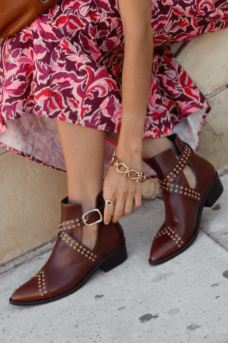 Vintage-Lederstiefeletten mit Nieten und Schnallenriemen